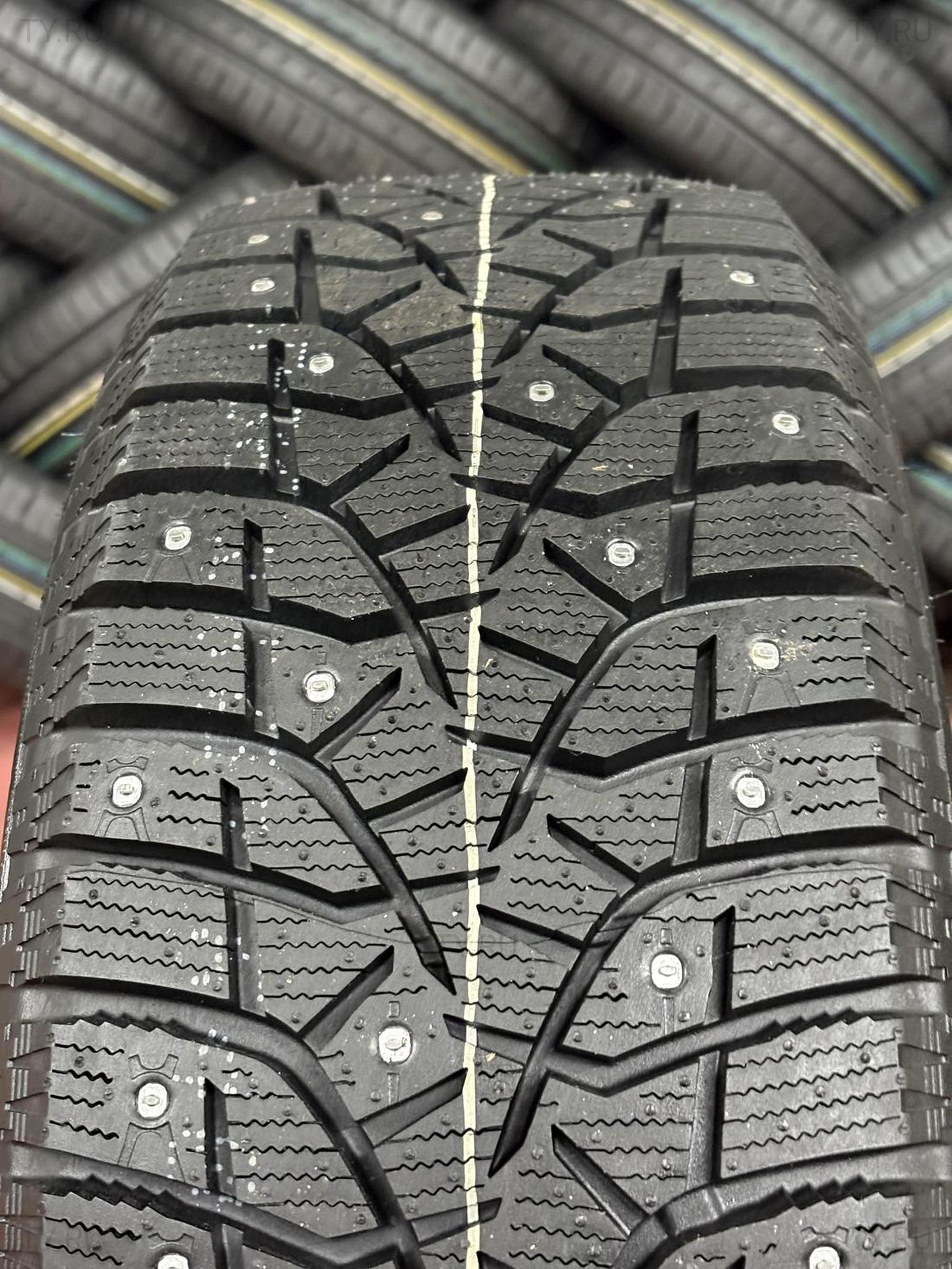 зимние ошипованные шины с направленным V-образным рисунком протектора и направленными шипами