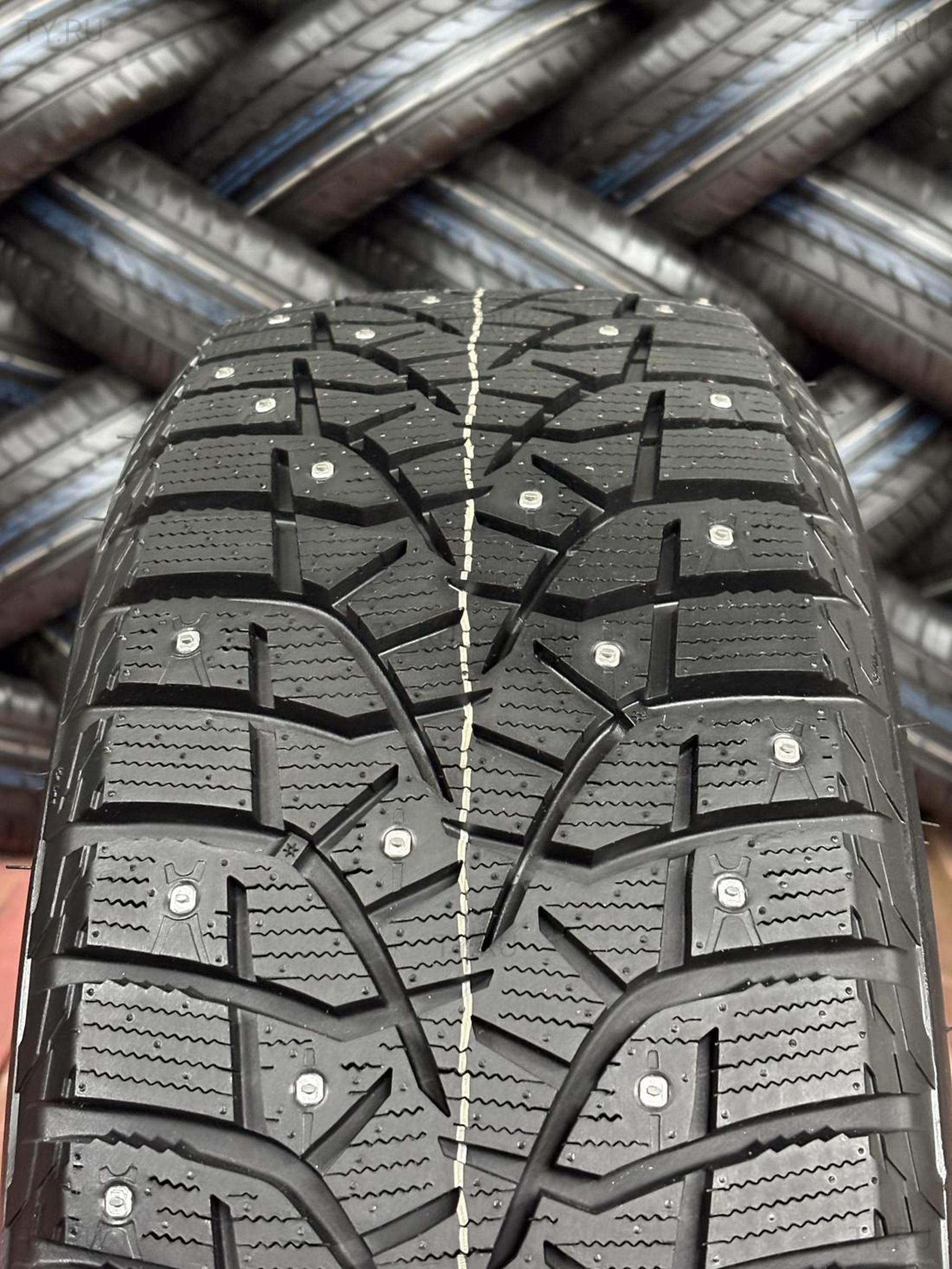 зимние ошипованные шины с направленным V-образным рисунком протектора и направленными шипами